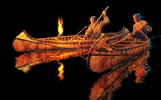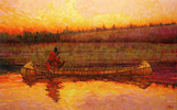 The Latest Work of Joe Velazquez click on image to see larger version Building Tip - More on Miniatures by Ted Behne Making Thwarts and Installing Them Previous articles outlined the process for selecting a canoe to model, reducing its dimensions to one-quarter scale, making a "blueprint" of the canoe, constructing a reusable building platform and making a gunwale frame. To review previous articles, go to "Tips" and sort through past issues of "The Bark Canoe Aficianado." Future articles will focus on making the component parts of the canoe; gunwales, gunwale frame, thwarts, ribs, sheathing, etc. Preparing these skeletal elements constitutes at least 50 percent of the work of building any canoe. Each part can be made separately, at any time and in any sequence, then stored until you are ready for assembly. It should also be noted that all of these procedures are identical to those for making full size canoes. Required tools: X-acto razor knife, coping saw, short-blade carver's knife, 1/32" drill bit. Making Thwarts Determine the shape and dimensions of each thwart from the ¼-scale blueprint of the canoe you have selected to build. Thwart styles vary considerably with different tribal styles and different builders. In some styles thwarts are like boards, completely lacking elegance. In other styles they are graceful and shapely. It is one of the areas of canoe building in which builders can display artistry and individuality. Of course, thwarts are also functional and must be strong enough to serve, along with the gunwales, as the backbone of the canoe. Hardwoods such as Ash, Maple, Oak or Birch are often chosen for their strength, but some builders also use Spruce or even Cedar. Draw a centerline on each thwart blank to use as a reference during shaping. Do the rough shaping with a coping saw, then the final shaping with a short-bladed carver's knife, leaving the tips that extend through the gunwales unfinished. When you are ready to assemble the gunwale frame, form tenons at the ends of the thwarts, leaving "shoulders" at the inboard edges of the inwales. Installing Thwarts in the Inwale Frame After the inwale frame has dried thoroughly, mark the locations to cut mortises into each inwale, using the thwart tenons as templates. Then disassemble the inwale frame to gain best access to the mortise locations. Use the pointed blade of an X-acto knife to cut thin mortise slits through the sides of the inwales. To retain maximum possible strength in the finished inwale frame, make the mortises and the tenons as thin as possible, consistent with adequate strength. The final fit for each mortise and tenon should be snug. Reassemble the inwale frame, holding the thwarts in place temporarily with rubber bands or string. As you do this, say a little prayer that the inwales don't break as they bend at each of the thwart mortises. If the inwale frame remains intact, tempt fate even further by drilling a 1/32" hole vertically through the inwales and each thwart tenon. Peg each hole with ½ of a round toothpick, tapped into place until it is tight. The hard wood of the toothpick will spread the sides of the soft cedar hole and lock the peg in place as though it were a nail. Carefully trim the top and bottom of each peg so as to be flush with the inwale surfaces. Tie the ends of the inwales together with sturdy sewing thread. Color doesn't matter, as the ends of the inwale frame will be hidden in the finished canoe. The inwale frame is now complete and can be set aside while other components are made. Next, turn your attention to making ribs, the essential skeletal elements of the canoe. That process will be described in next month's newsletter.